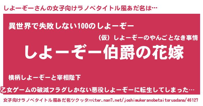| 男性向けラノベタイトル風あだ名 | 『やはりしよーぞーの青春ラブコメはまちがっている 』 |