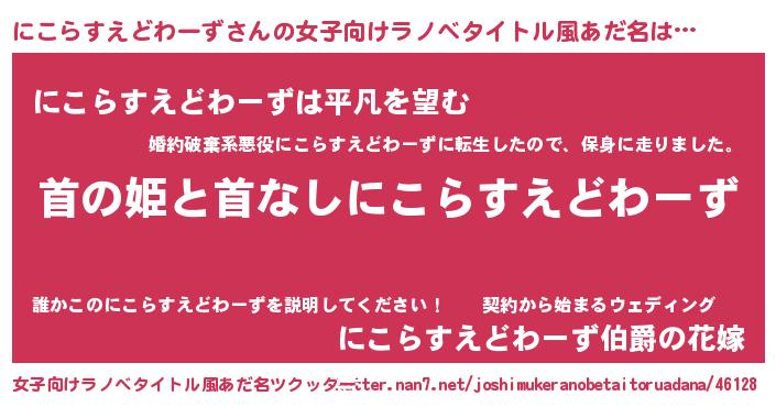 | 男性向けラノベタイトル風あだ名 | 『はたらくにこらすえどわーずさま!』 |