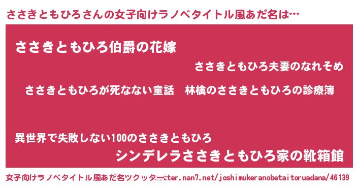 | 意味不明あだ名 | 『住所不定無職ささきともひろ(39歳)』 |