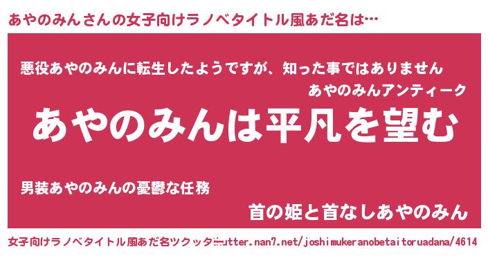 | 胡散臭い通販商品みたいなあだ名 | 『信頼と実績のペンダント…その名も「あやのみん」』 |