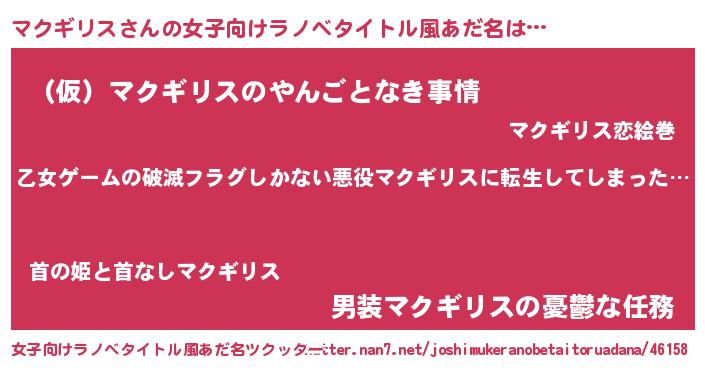 | 胡散臭い通販商品みたいなあだ名 | 『世界中を虜にした100年もののヴィンテージワイン…その名も「マクギリス」』 |