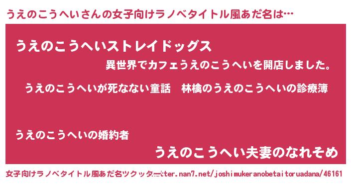 | 男性向けラノベタイトル風あだ名 | 『魔弾の王とうえのこうへい』 |