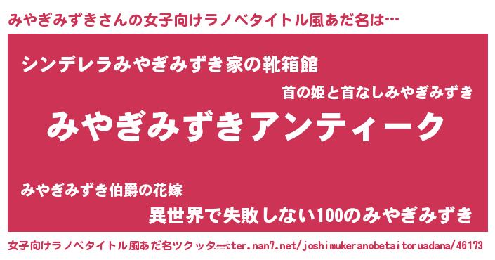 | 男性向けラノベタイトル風あだ名 | 『魔法科高校のみやぎみずき』 |