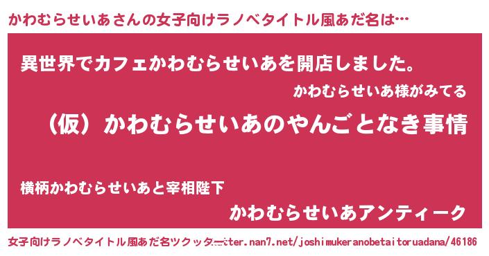 | 男性向けラノベタイトル風あだ名 | 『かわむらせいあの憂鬱』 |