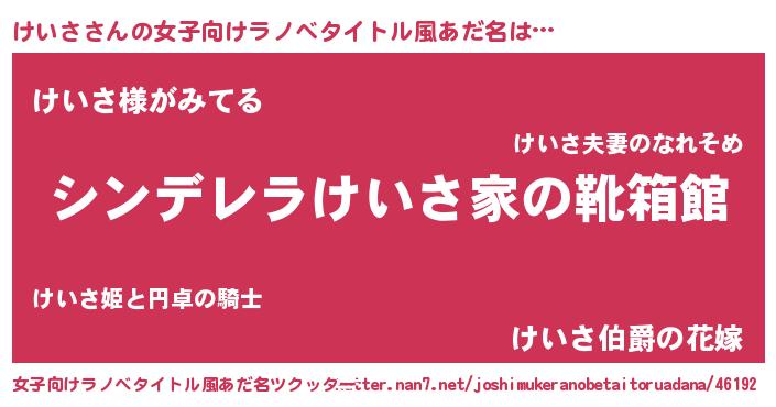 | 胡散臭い通販商品みたいなあだ名 | 『信頼と実績のペンダント…その名も「けいさ」』 |