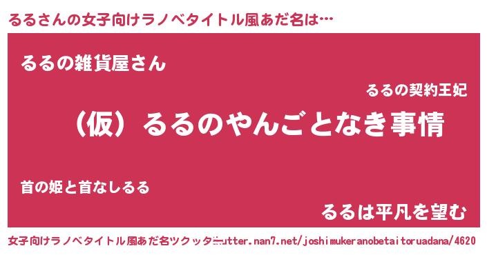 | 男性向けラノベタイトル風あだ名 | 『るるの憂鬱』『はたらくるるさま!』 |