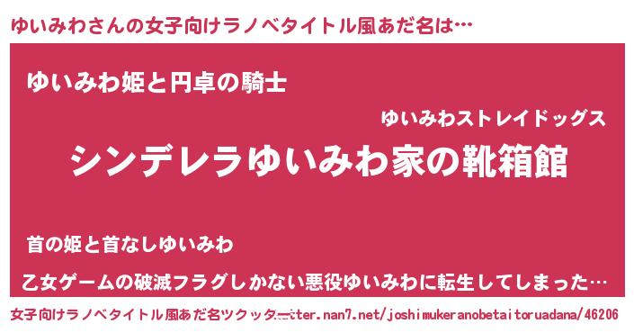 | 男性向けラノベタイトル風あだ名 | 『緋弾のユイミワ』『魔弾の王とゆいみわ』 |