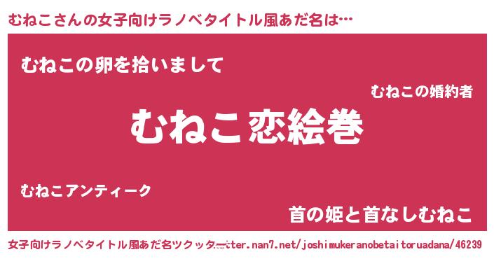 | 男性向けラノベタイトル風あだ名 | 『ノーゲーム・ノームネコ』 |