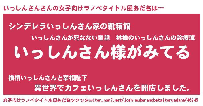 | 男性向けラノベタイトル風あだ名 | 『いっしんさんの嫁は女の子じゃないと思った?』 |
