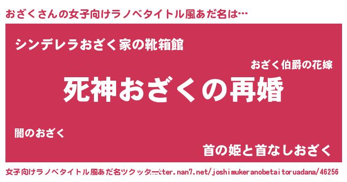 | 男性向けラノベタイトル風あだ名 | 『ノーゲーム・ノーオザク』 |