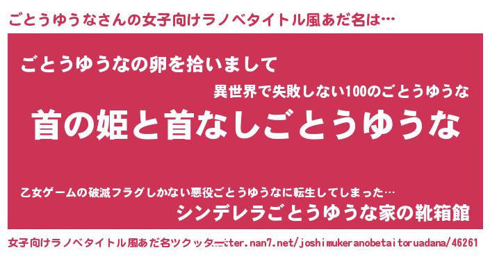 | ヘコむあだ名 | 『ごとっちょ』『ごとうゆうな(小並感)』 |