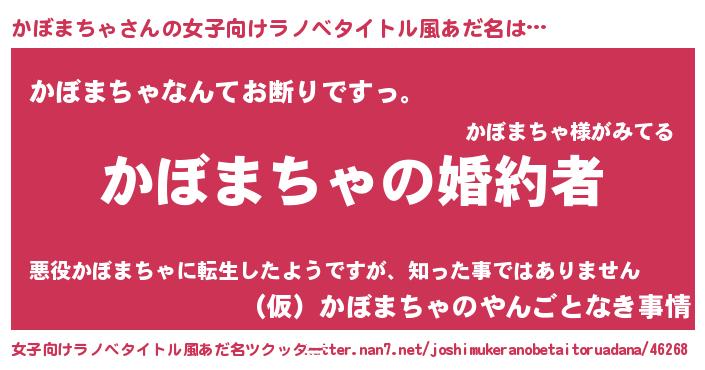 | 胡散臭い通販商品みたいなあだ名 | 『運命の人と巡り会える高級そうな壺…その名も「かぼまちゃ」』 |