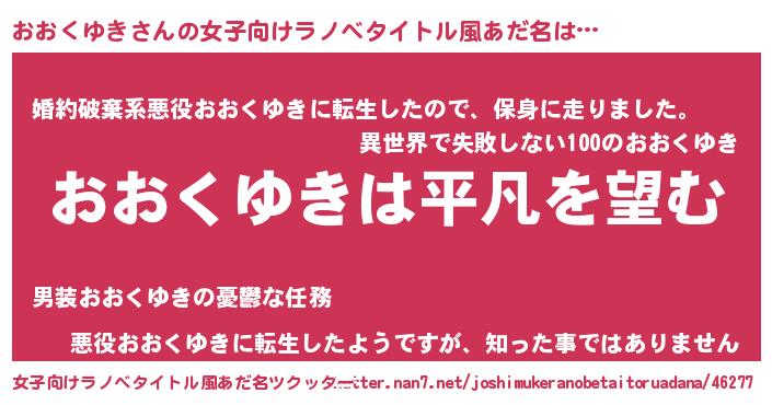 | 男性向けラノベタイトル風あだ名 | 『ダンジョンにおおくゆきを求めるのは間違っているだろうか』 |