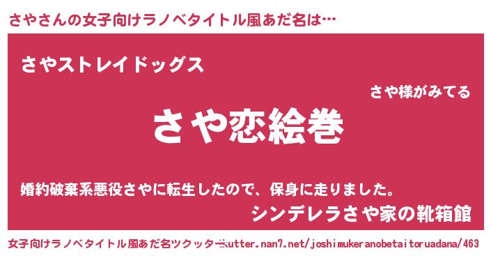 | ヒーロー風カッコイイあだ名 | 『愛の使者さや』『超時空戦士サヤ』 |