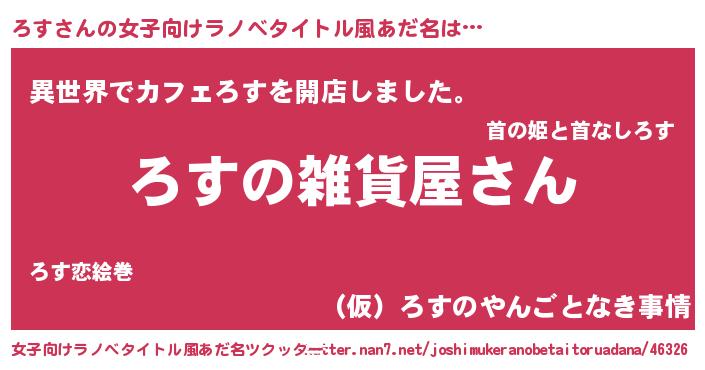 | 男性向けラノベタイトル風あだ名 | 『やはりろすの青春ラブコメはまちがっている 』 |