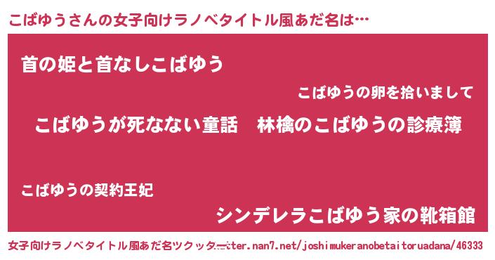 | 意味不明あだ名 | 『住所不定無職こばゆう(1歳)』 |