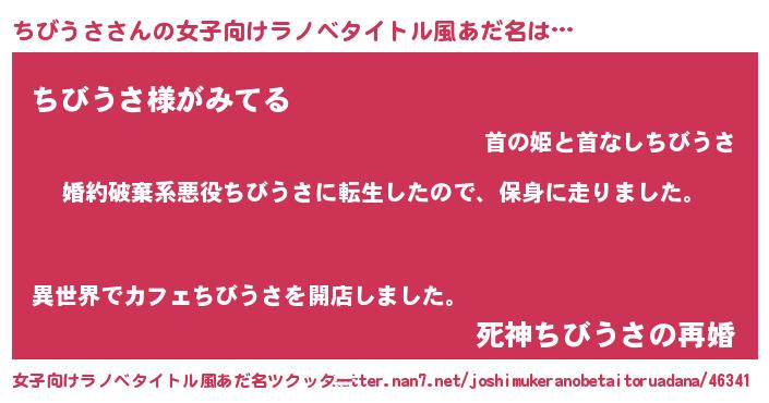 | 胡散臭い通販商品みたいなあだ名 | 『信頼と実績のサプリメント…その名も「ちびうさ」』 |