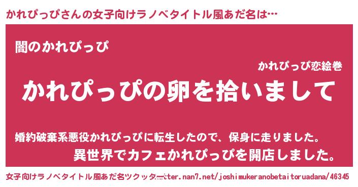 | 男性向けラノベタイトル風あだ名 | 『かれぴっぴの嫁は女の子じゃないと思った?』 |