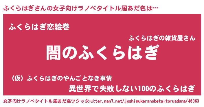 | ヒーロー風カッコイイあだ名 | 『サイバー戦士フクラハギ』 |