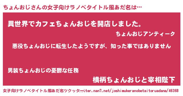 | 意味不明あだ名 | 『住所不定無職ちょんおじ(47歳)』 |