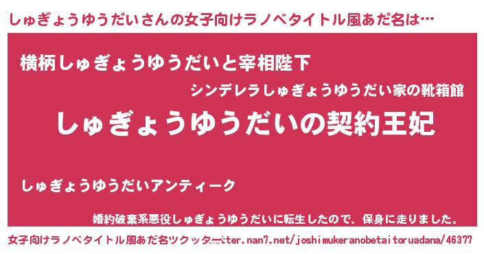 | 意味不明あだ名 | 『永久保存しゅぎょうゆうだい』 |