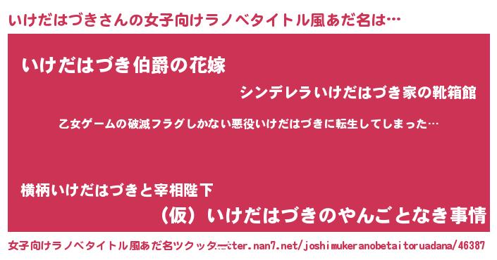 | 男性向けラノベタイトル風あだ名 | 『この素晴らしい世界にいけだはづきを!』 |