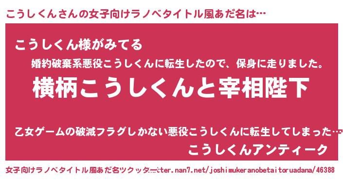 | ピコ太郎風あだ名 | 『コウ六郎』『ピココ郎』『ピコ十郎』 |