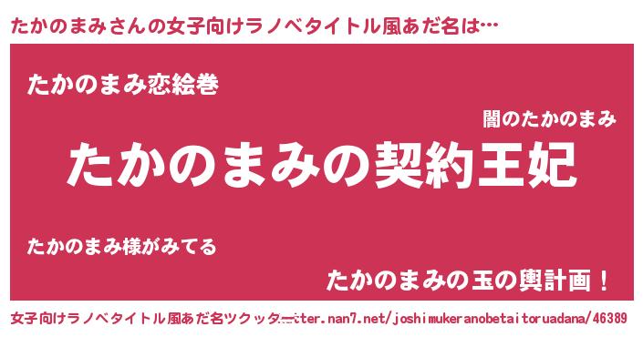 | 男性向けラノベタイトル風あだ名 | 『たかのまみという概念が存在しない退屈な世界 』 |