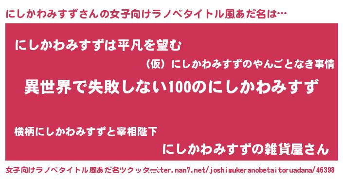 | 男性向けラノベタイトル風あだ名 | 『にしかわみすずという概念が存在しない退屈な世界 』 |