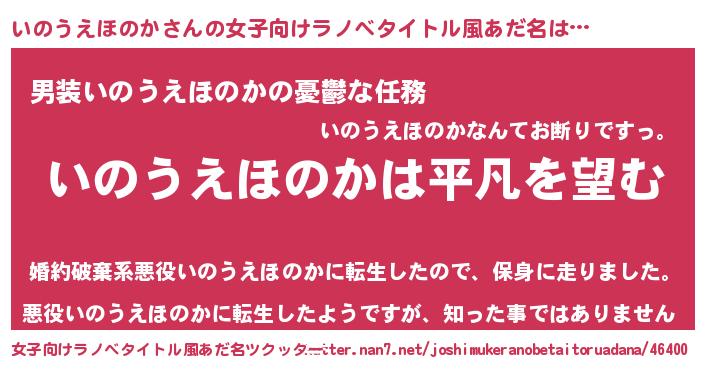 | 男性向けラノベタイトル風あだ名 | 『ダンジョンにいのうえほのかを求めるのは間違っているだろうか』 |