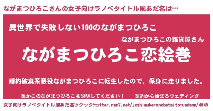 | ヘコむあだ名 | 『ながまつひろこ(笑)』『ながっふぃ~』 |