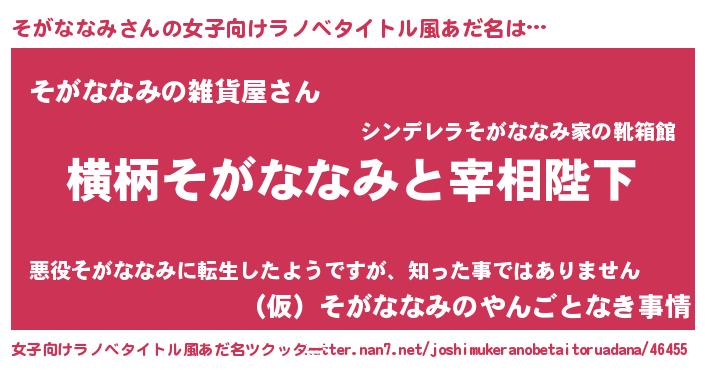 | 男性向けラノベタイトル風あだ名 | 『そがななみに滅ぼされるだけの簡単なお仕事です』 |