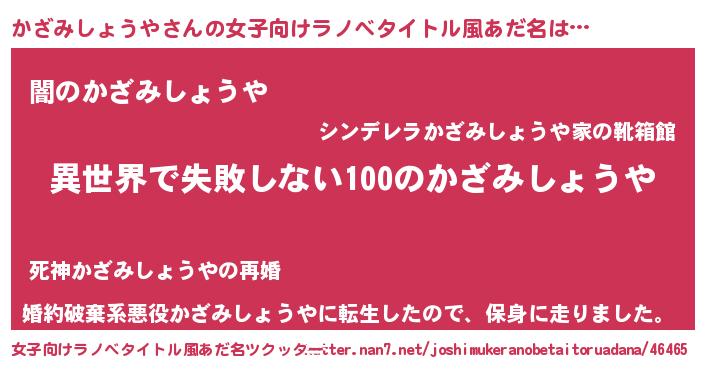 | 男性向けラノベタイトル風あだ名 | 『かざみしょうやという概念が存在しない退屈な世界 』 |