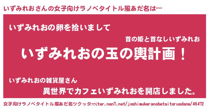 | 男性向けラノベタイトル風あだ名 | 『転生したらいずみれおだった件』 |