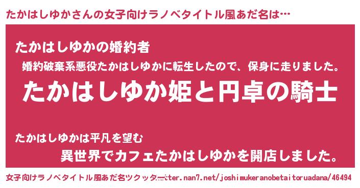 | 胡散臭い通販商品みたいなあだ名 | 『モテモテ間違いなし水晶球…その名も「たかはしゆか」』 |