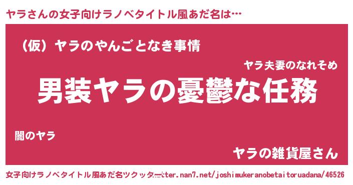 | 男性向けラノベタイトル風あだ名 | 『うちのヤラが世界を掌握している!』 |