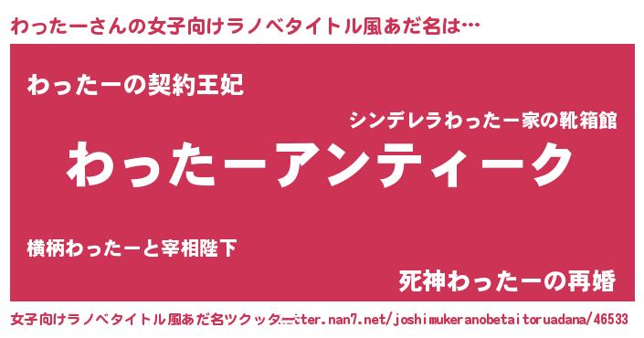 | 意味不明あだ名 | 『自称わったー』『永久保存わったー』 |