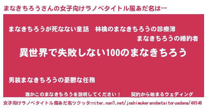 | 男性向けラノベタイトル風あだ名 | 『まなきちろうという概念が存在しない退屈な世界 』 |