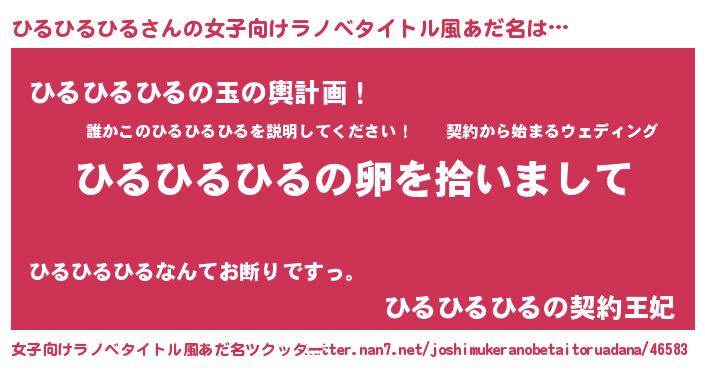 | 男性向けラノベタイトル風あだ名 | 『ダンジョンにひるひるひるを求めるのは間違っているだろうか』 |