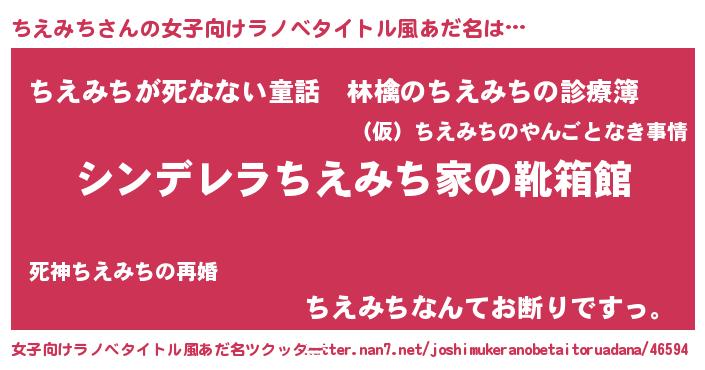 | 意味不明あだ名 | 『住所不定無職ちえみち(85歳)』 |