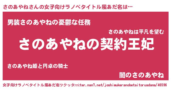 | 男性向けラノベタイトル風あだ名 | 『誰もが恐れるあのさのあやねが、ぼくの専属メイドになるようです。』 |
