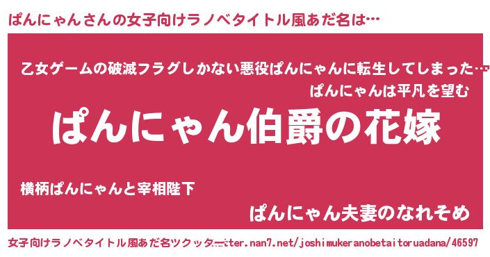| 意味不明あだ名 | 『ぱんにゃんフォーエバー』 |