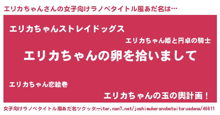 | 男性向けラノベタイトル風あだ名 | 『ダンジョンにエリカちゃんを求めるのは間違っているだろうか』 |