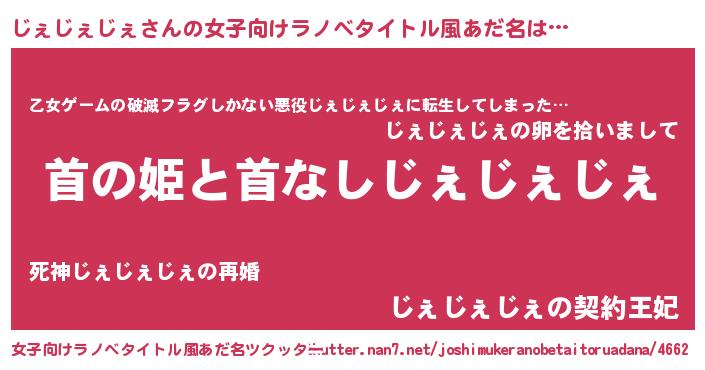 | 男性向けラノベタイトル風あだ名 | 『はたらくじぇじぇじぇさま!』 |
