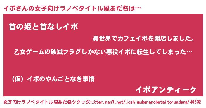 | ヘコむあだ名 | 『イボ(爆)』『イボにー』『レバニラ』 |