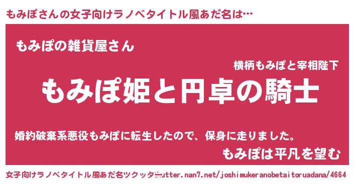 | 男性向けラノベタイトル風あだ名 | 『もみぽの憂鬱』『モミポスレイヤー』 |