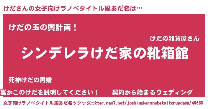 | 男性向けラノベタイトル風あだ名 | 『緋弾のケダ』『ケダアートオンライン』 |