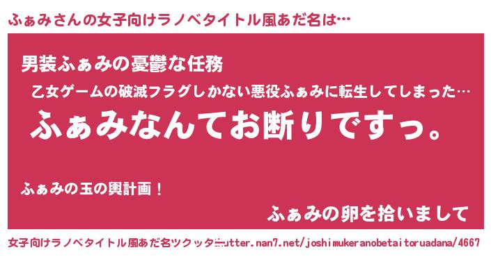 | 男性向けラノベタイトル風あだ名 | 『魔法科高校のふぁみ』 |