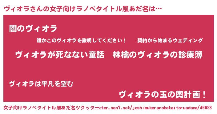 | ヒーロー風カッコイイあだ名 | 『仮面ヴィダー』『最強戦士ヴィオラ』 |