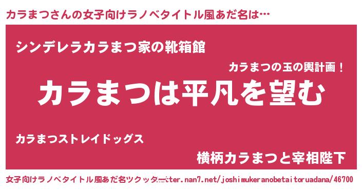 | 胡散臭い通販商品みたいなあだ名 | 『信頼と実績のサプリメント…その名も「カラまつ」』 |
